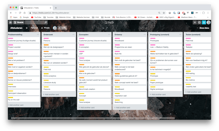 Om een beeld te krijgen van wat ik allemaal moet gaan doen heb ik een trello board opgezet. Deze kan ik bekijken zodat ik een overzicht blijf houden in het project.