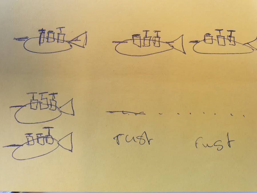 Dit is de customer journey van de oude situatie. Hier heb ik simpel visueel proberen te maken waar het belangrijkste probleem ligt voor muzikanten. Zo weet ik welk moment in de situatie verbeterd moet worden. Dat is in dit geval aan het einde van de situatie.