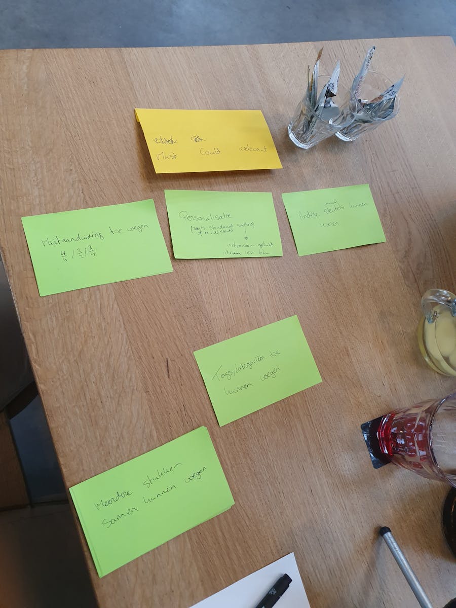 Samen met Carolien ben ik gaan zitten om het over mijn concept te hebben. Samen zijn we tot een lijst aan eisen gekomen die in de applicatie moeten. Zo blijft de applicatie het best aan de behoeftes van Carolien voldoen.