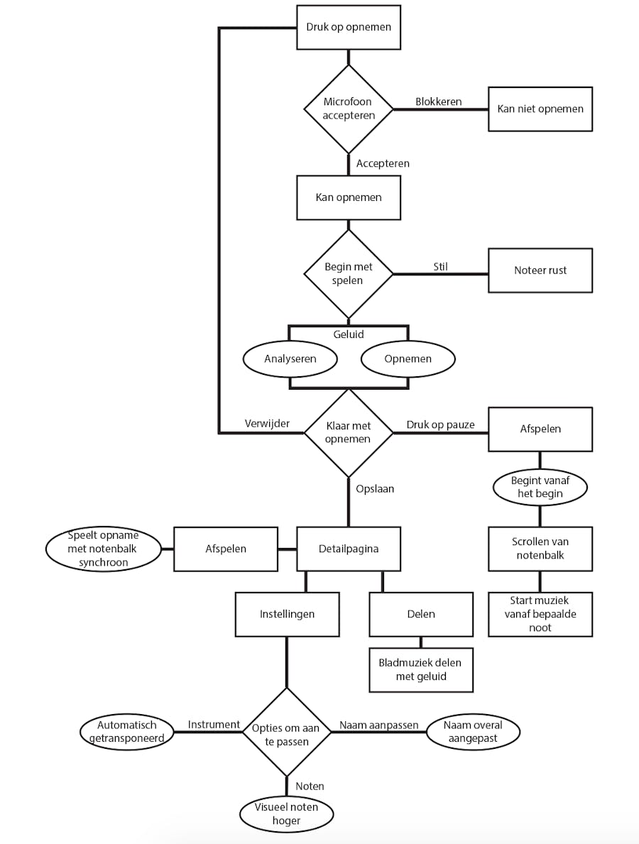 Het belangrijkste tijdens dit proces zijn de interviews die alles concreet hebben kunnen maken. Ik ben in een vroeg stadium een 10 muzikanten gaan interviewen, waarvan 1 met de camera. Deze hebben aangegeven hoe zij om gaan met muziek en waar hun problemen liggen. Dit ging vooral over het noteren van muziek.
